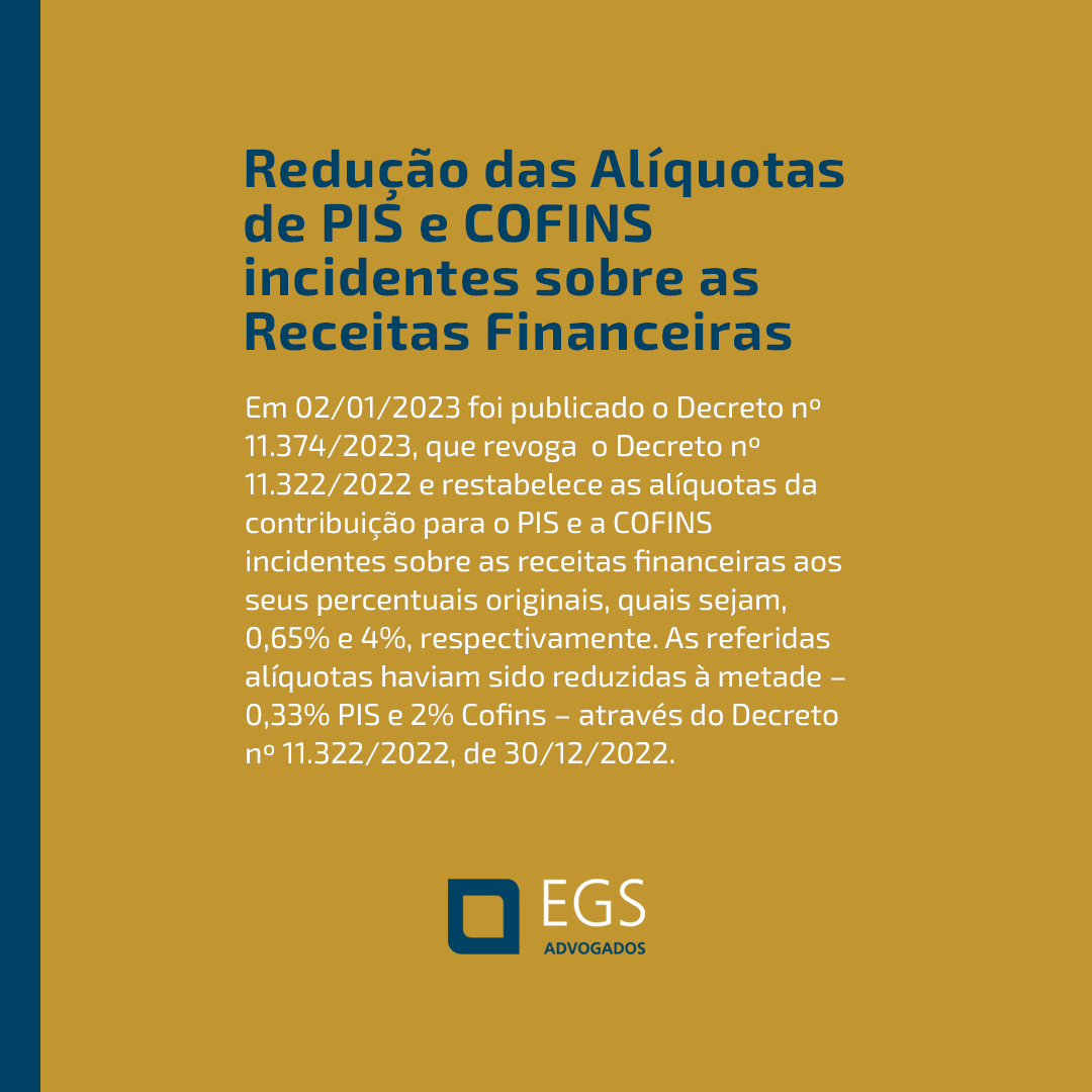 O novo Ministro da Fazenda, Fernando Haddad, anunciou uma série de medidas tributárias a fim de aumentar a arrecadação de tributos e diminuir o déficit fiscal. Confira nas imagens abaixo os principais pontos destacados pela equipe EGS Advogados.